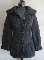 estoy haciendo el mismo que vas a hacer tú, el del cuello volteado; el domingo lo rematé pero al probarmelo no me gustó como armaba el cuello, así que ahora desbarataré unas vueltas para darle más amplitud y hacerlo más grande.